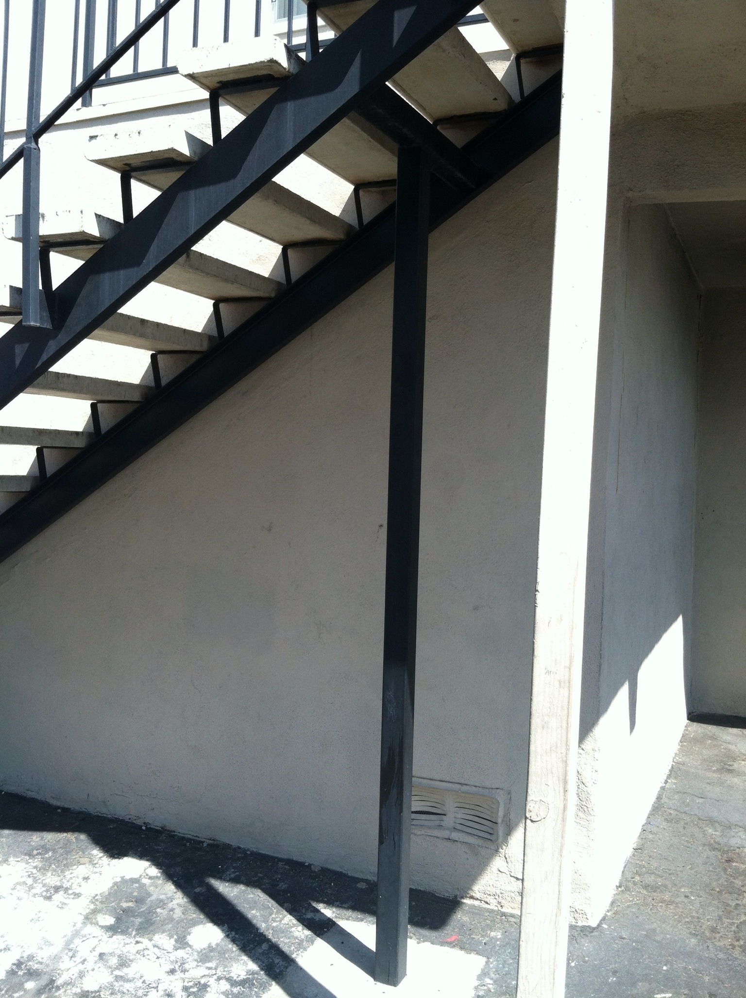 Support posts can be installed on any staircase or existing deck. Support posts are included on all new precast staircase applications and include lootings. The posts are constructed of high grade structural steel and include all mounting plates and or saddles. Staircase support posts range from tee supports to double supports. Double supports with cross bracing are also available.